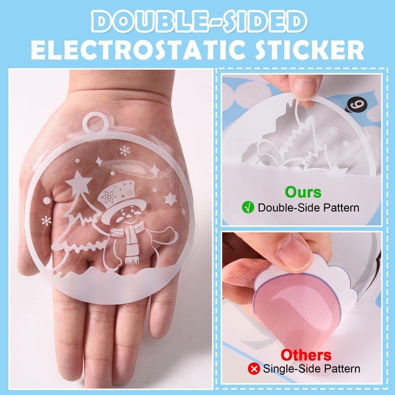 - Easy to Use: Reusable christmas window stickers do not require adhesives or glues, Just clean the surface of the pasted object before pasting, tear off the pattern you want and install it on smooth surface with gentle press.These winter window clings sticks firmly and won't fall off easily.