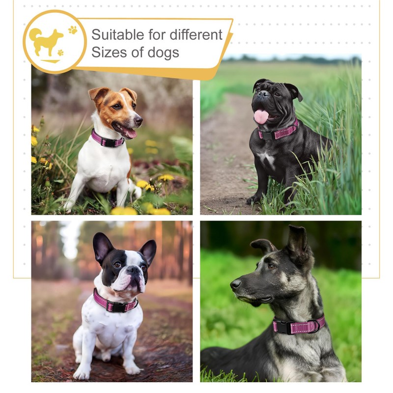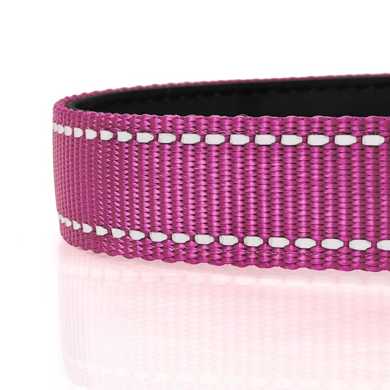 HEELE Dog Collar, Nylon Dog Collar, Reflective Dog Collar with Soft Neoprene Padded for Puppies, Small, Medium, Large Dogs, Length Adjustment Range 34-52 cm, Magenta Red, M