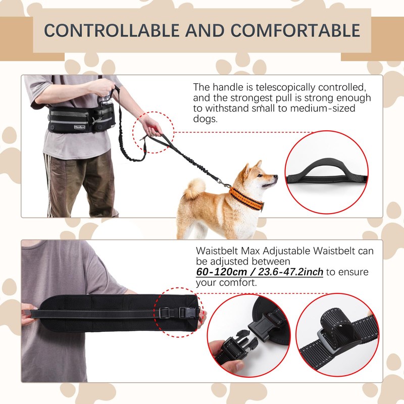 - Comfortable and Durable: We understand the importance of comfort for both you and your dog. That's why our hands-free dog leash is made of high-quality materials that are not only durable but also comfortable to wear. The adjustable waist pack and leash ensure a secure and comfortable fit, minimizing stress and discomfort during your outdoor activities