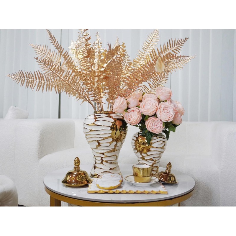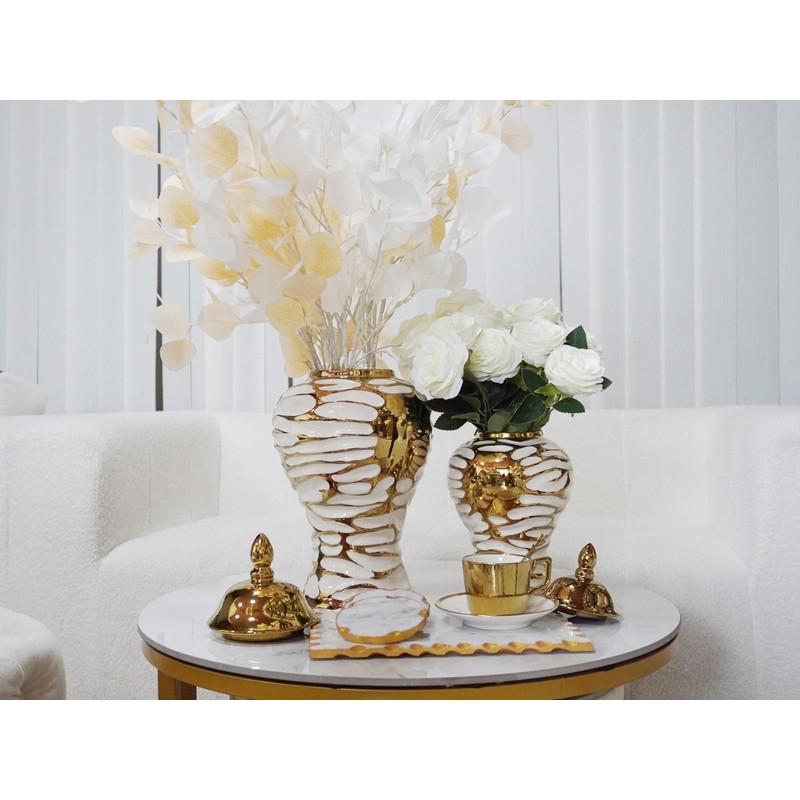 Heemab Charming Ceramic Ginger Jar with Removable Lid and Gold Detailing, Contemporary Modern Design, 8.5-inch Diameter