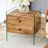 Heemab Double-Drawer Bedside Table with Transparent Glass Sides, Elegant Storage Solution for Bedroom or Living Room, Simple Design, Wood Finish