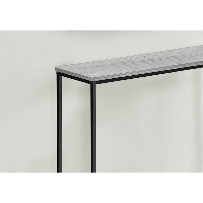 Functional Everyday UseFeaturing a grey wood-look laminate top, this table is not only stylish but too. Use it to display decorative objects, or as a convenient spot to drop your keys, cell phone, or mail when you walk in the door. Turn into order and add a touch of flair to your entryway or living room.