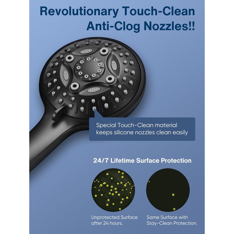 • 【8 Spray Modes Handheld Shower Head】Heemli handheld shower head is different from regular shower head as it comes with 8 spray modes, which gives you a different shower experience. To meet the needs of the whole family at the same time you just need to switch between them at the touch of a button.