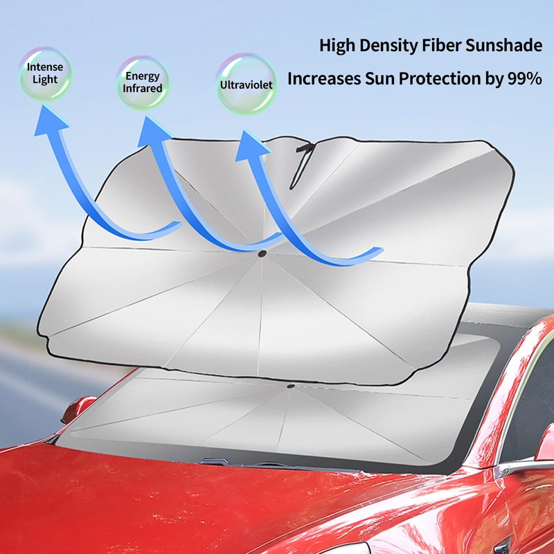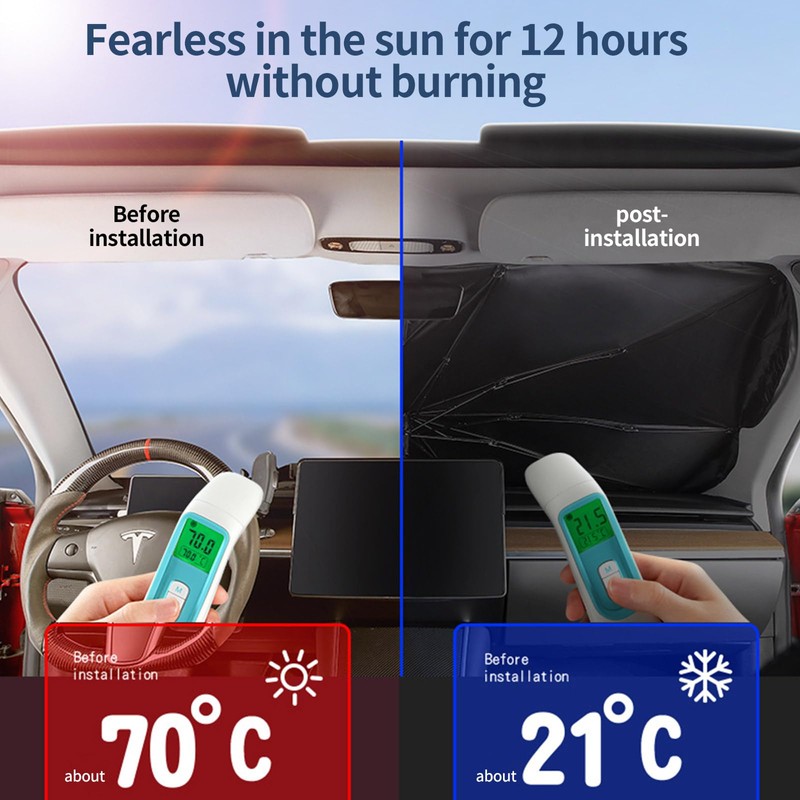 - 🌞【Sun Protection】 Use Tesla y sunshade, the top of your head will no longer be hot to avoid exposure to the sun; the high-quality textile layer is matched with 160,000 dot ice crystal reflective coatings, which effectively reduces the temperature inside the car, protects against 99% of Sunlight rays.
