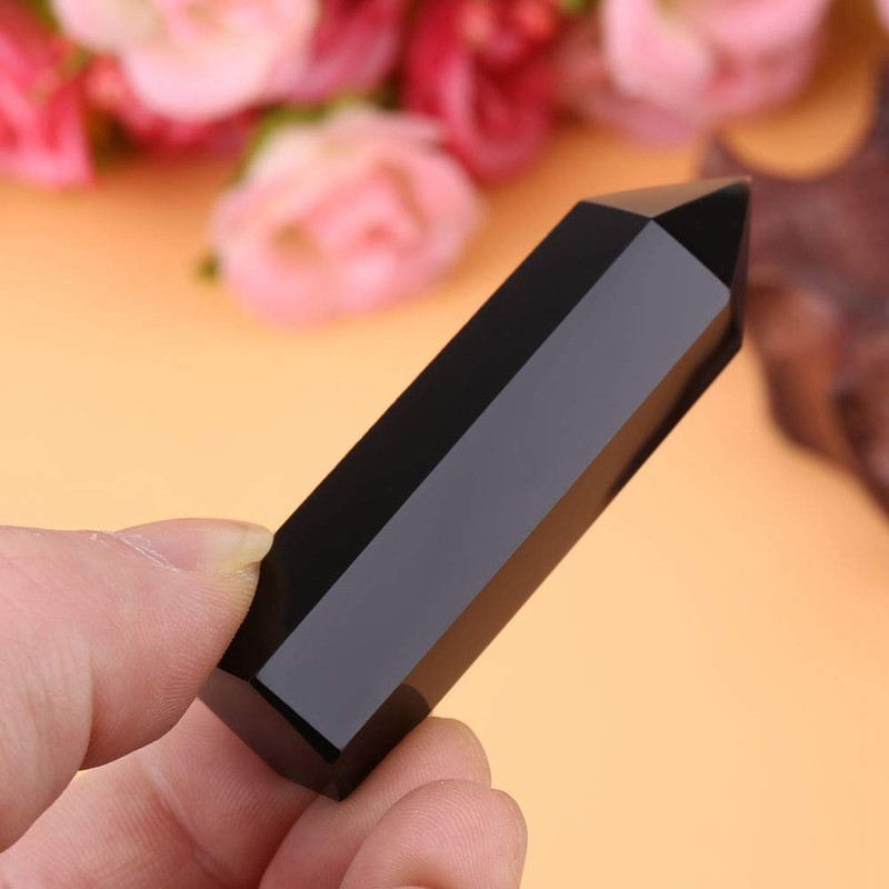 - 6 faced black obsidian – beautiful hexagonal design and a dot on the top. Expert cutting 6 facets very high-quality natural stone crystal rod
