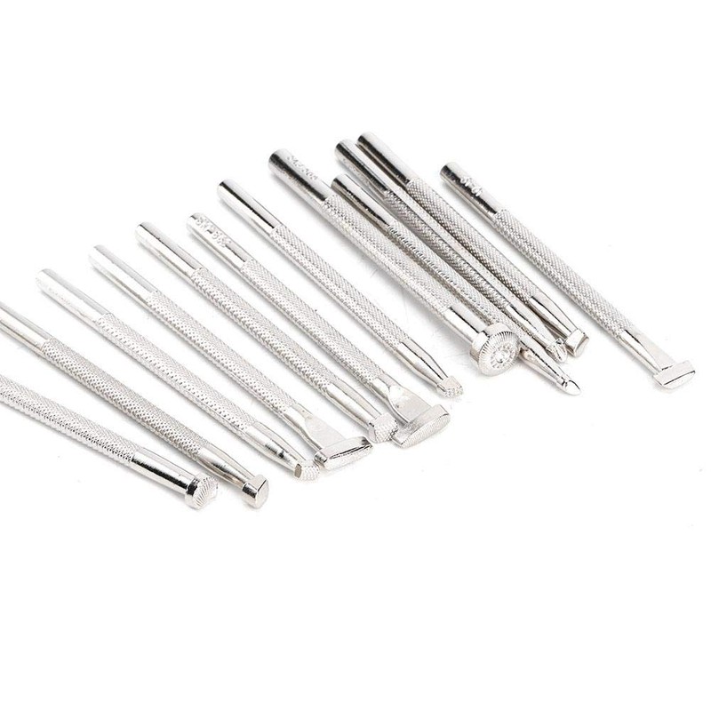 HEEPDD Leather Stamp Tool, Leather Engraving and Embossing Tools, Various Shapes Stamp Punch Set, Saddle Making Tools for Leather Crafts, 12 Pieces