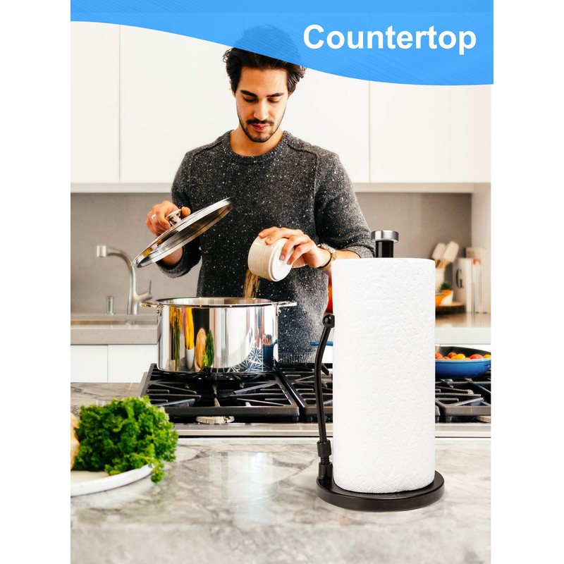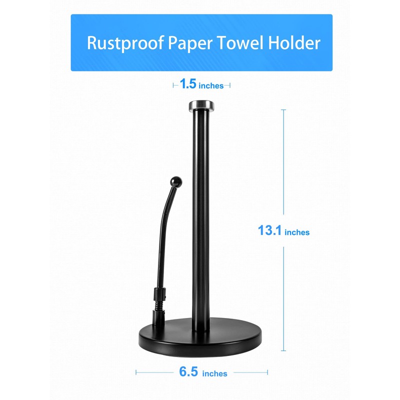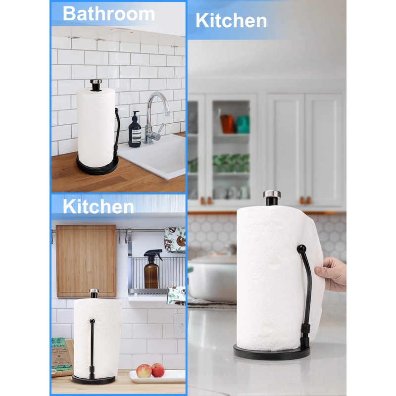 - [Durable Material] Made of sturdy stainless steel to ensure long time use. Weighted the base of the stand-up paper towel holder to ensure not falling during tearing a sheet of paper.