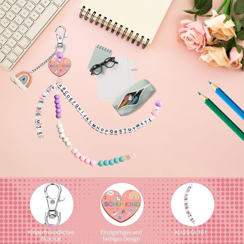 - The rake chain is equipped with 3 hanging ropes: one with 26 ABC letters, it can also personalise your name. One with 20 colourful beads and one with 0-9 numbers.