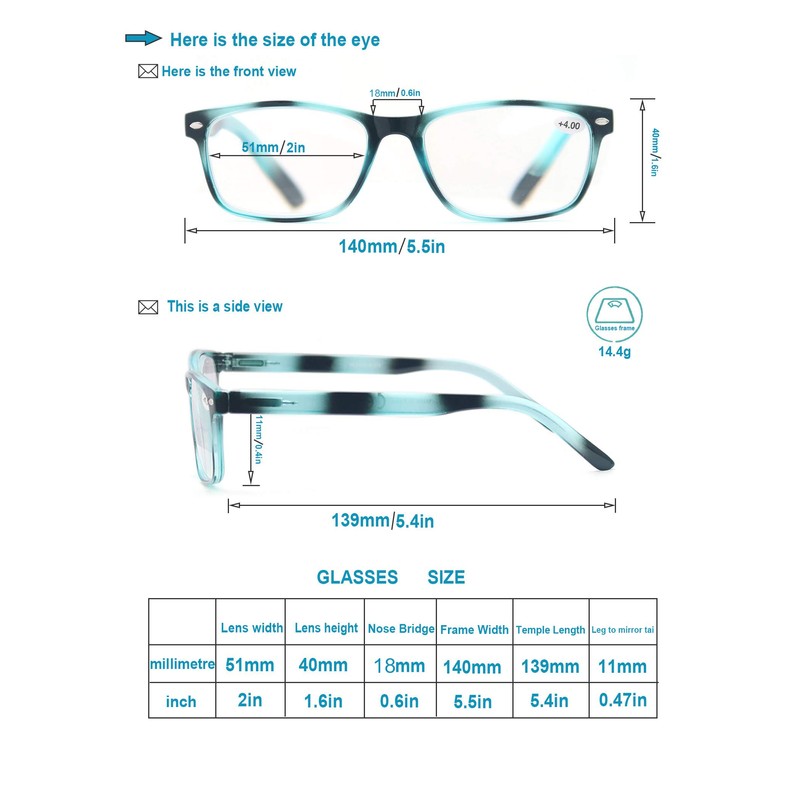 - 【Comfortable To Wear】Durable frame with adjustable spring hinge, suitable for long-term wearing and very comfortable, the frame with design sense is suitable for any occasion, and the universal size is suitable for most face shapes.