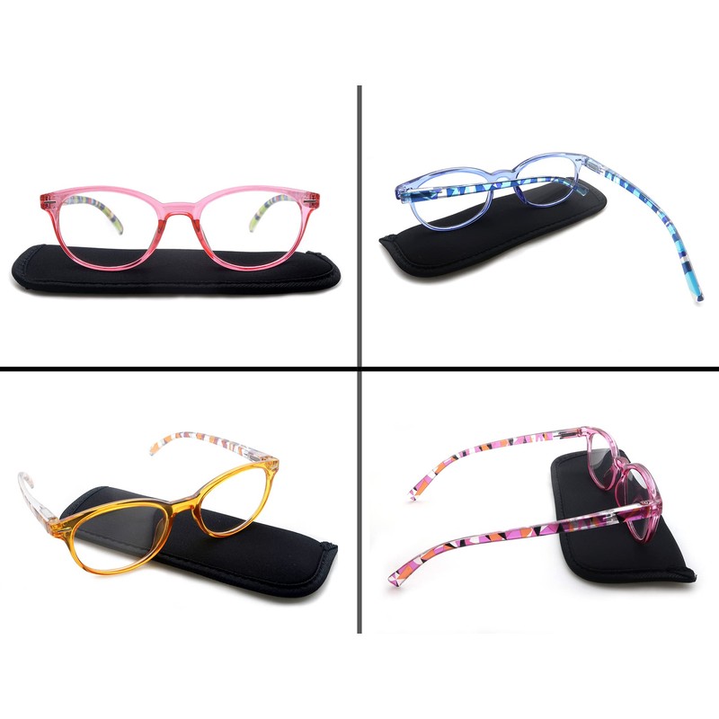 - 【Reading Glasses for Women】4 Pairs of square readers in black, tortoise shell, blue and frosted transparent in same magnification strength,extra bonus 4 pouches and 1 microfiber cleaning cloths