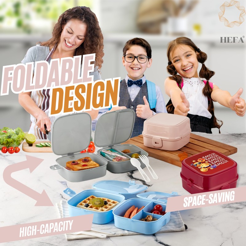 - HEFA Lunch Box for Kids, All-in-One Foldable Lunch Box, Bento Box for Girls, Spoon and Fork included Lunch Box for Boys, Sandwich Containers