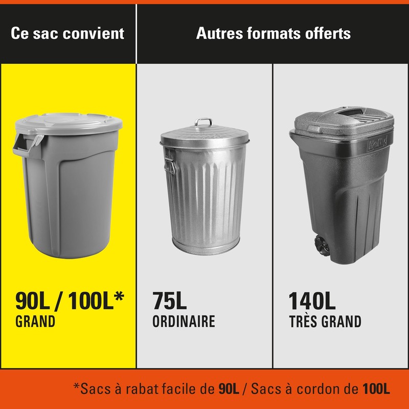 - Hefty Garbage Bags, Value Pack Large 90 Litres Black, EasyFlaps, 110 Bags
