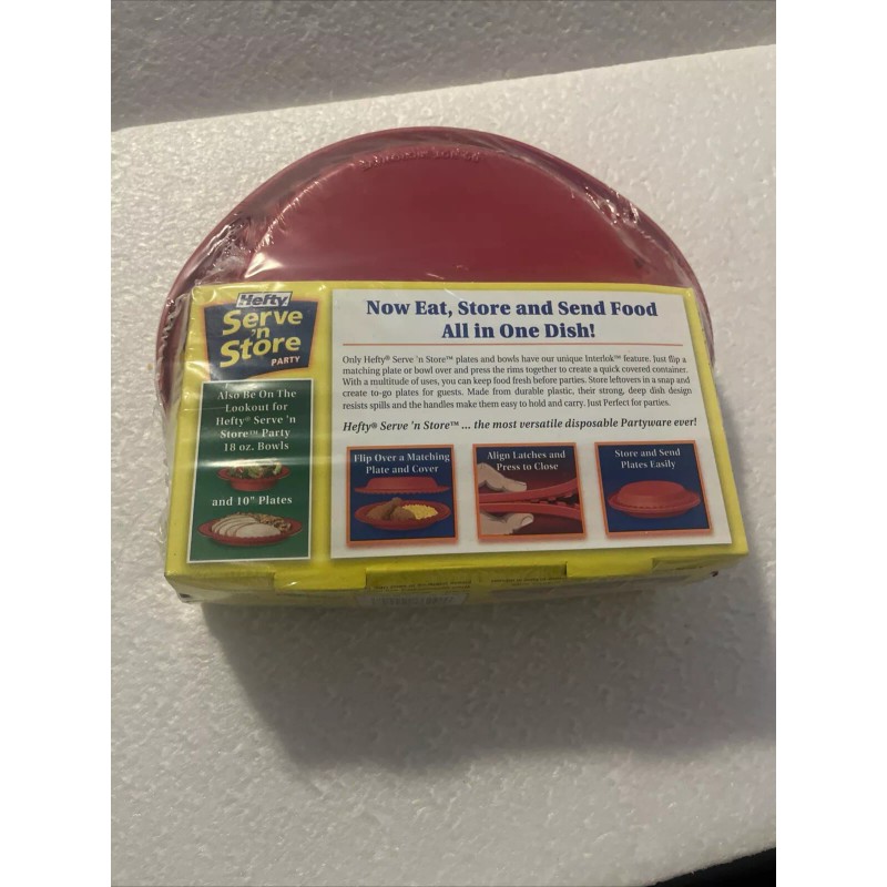 This is a buy it now for Hefty Serve n Store Interlocking Plates New Sealed 20 Plates Red 9.4 In X 8.6in