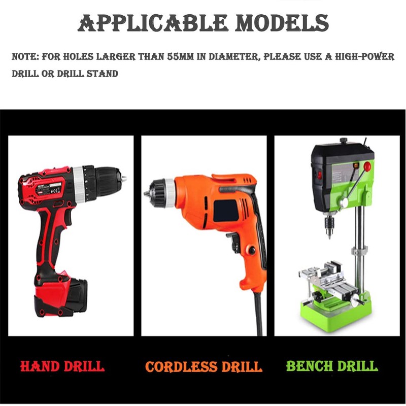 - 【Note】: Can not drill metal and non-ferrous metal; To avoid causing damage, be sure no nails or other metal objects in wood before drilling; The cutting edge and tip of the opener should be sharpened in time