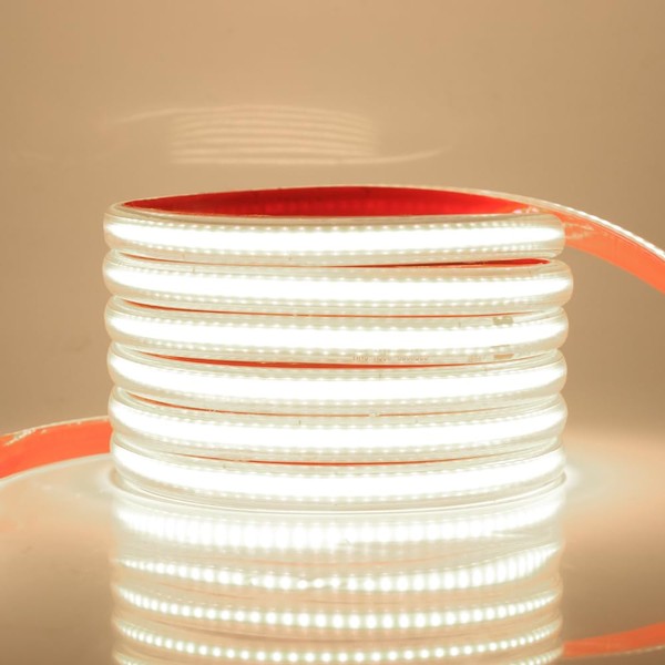 HEGEHE 220V COB Strip Light with Self-Adhsive Tape, Cut to 50cm, IP65 Waterproof LED Rope Light with Switch Power Supply (0.5m, Natural White)