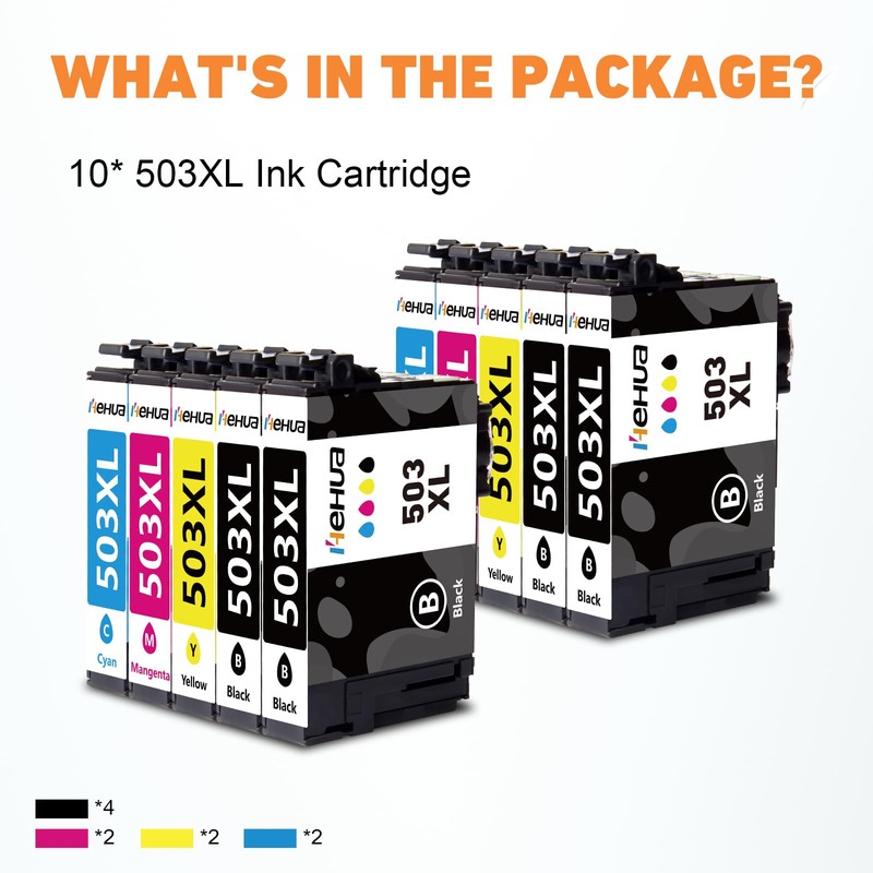 - Hehua Compatible Epson 503XL ink cartridges offer higher print quality than other ink cartridges. Our products resist fading and smudging and ensure reliable printing. If you have any questions, please contact us at Amazon