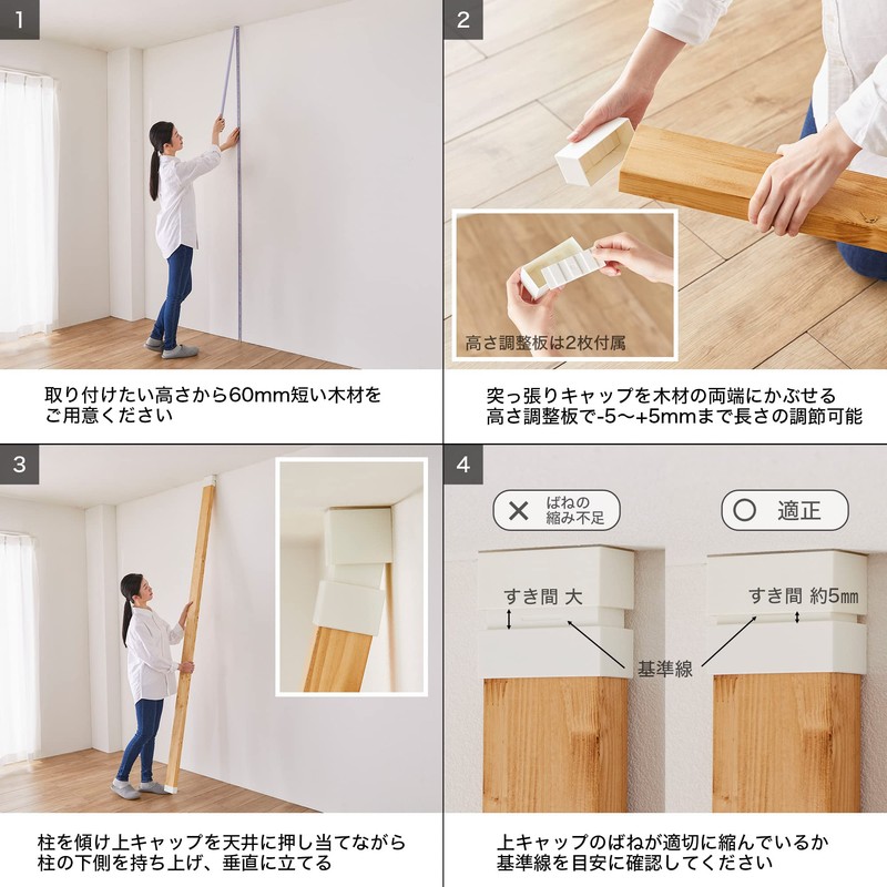- [Spring type with no step stool or tools required] Simply attach 2 x 6 materials to create wall storage without drilling holes on ceilings, floors and walls. Lovely core adjuster for the beginner DIY Simple and straight design blends into your life