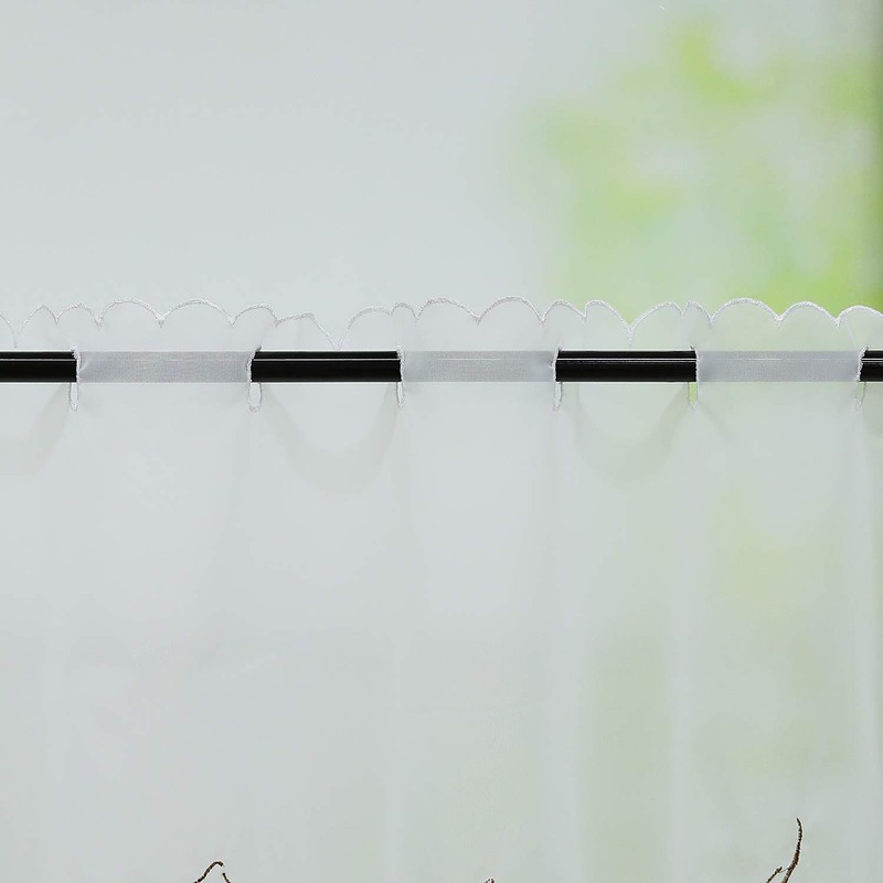 HeichkelL Besseit Voile Coffee Motif Window Curtain Kitchen Short Curtain Transparent Bistro Curtain White H x W 30 x 90 cm