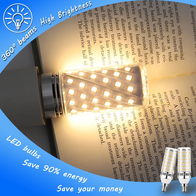 - (Energy saving) E12 12W LED corn bulbs to replace 100W incandescent light bulbs, cut down your electricity bill.