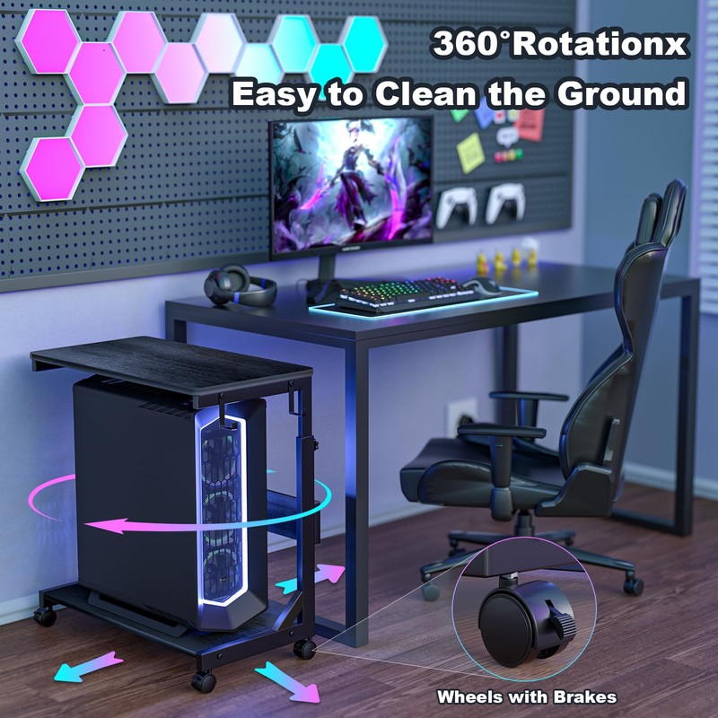• Multifunctional Computer Tower Stand: Our 2 tier computer cpu stand meets most storage needs, the bottom tier stores pc towers, the top tier stores books, documents, etc