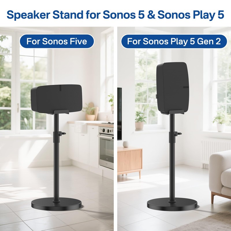 - Custom Design: Designed exclusively for Sonos Five and Sonos Play:5 Gen 2 speakers. The heavy duty speaker stand for Sonos Five securely hold your speaker vertically or horizontally for immersive surround sound in any home theater setup. Notice: Not for Sonos Play:5 Gen 1 speakers.