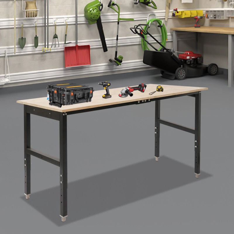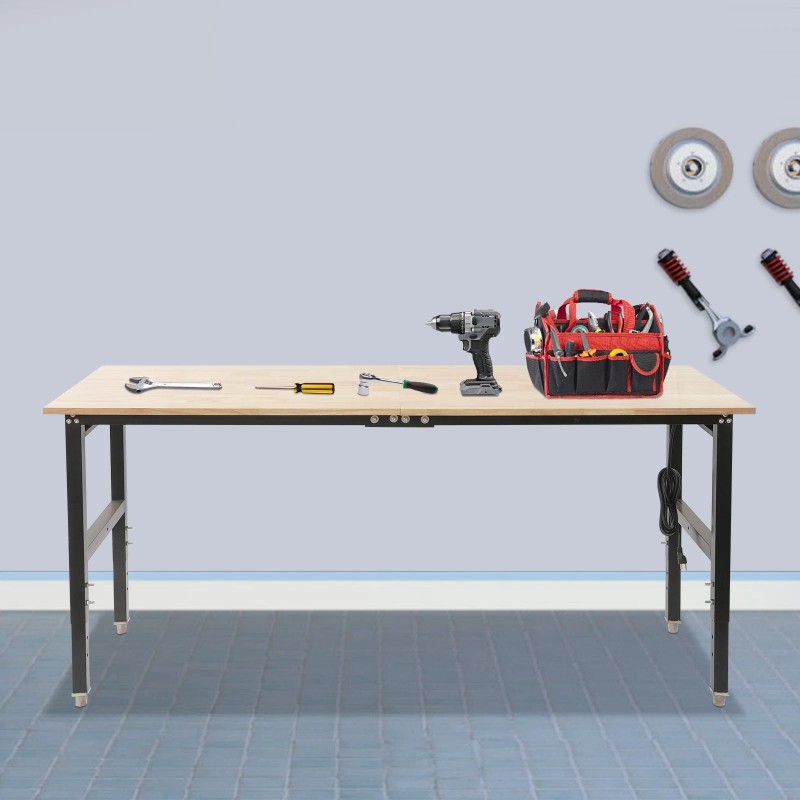 Height Adjustable Workbench, Workbench with Power Outlets, Heavy-Duty Work Table