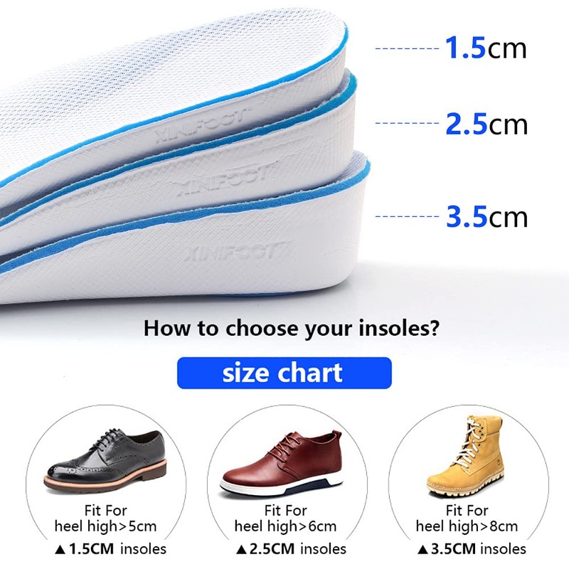 XINIFOOT height increase insoles make you height up to 1.5-3.5cm.