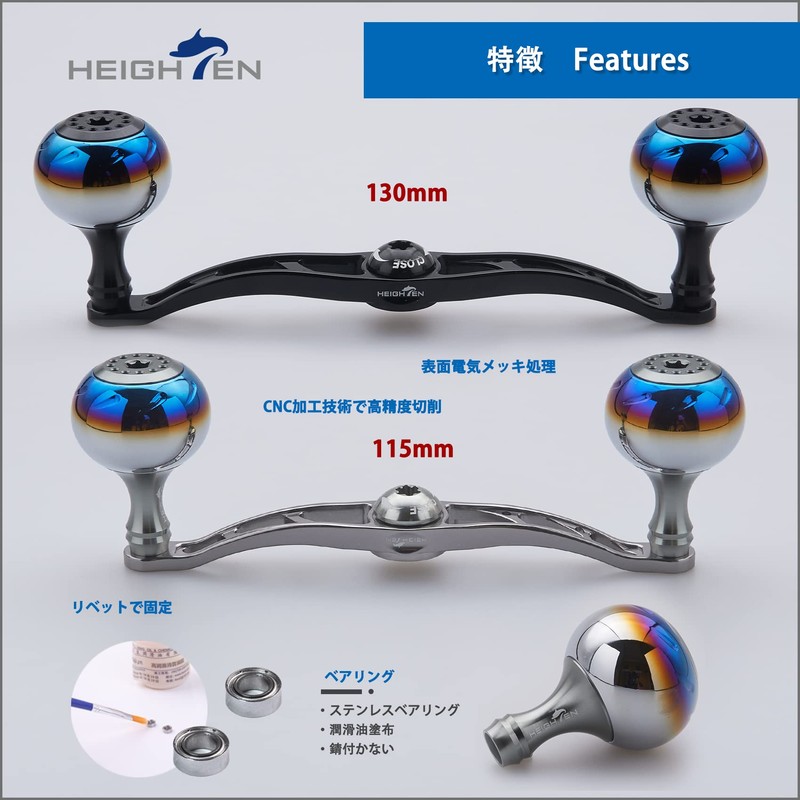 HEIGHTEN 130/120/115mm Reel Handle Shimano Daiwa Abu Garcia Universal Bait Reel Aurora Series (5.1 inches (130 mm), Gunmetal) (372)