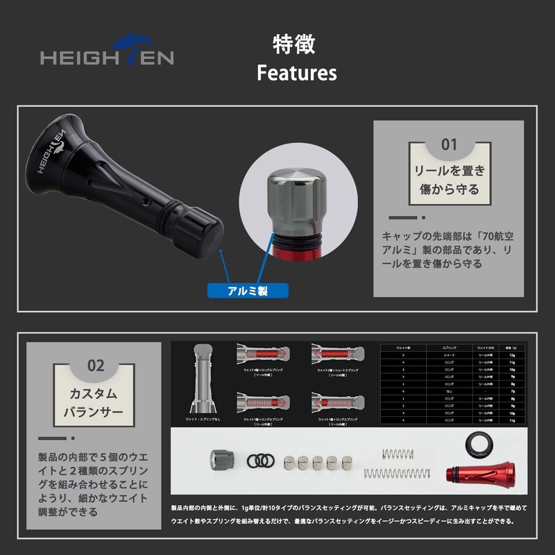 • [Product Features] Reel stand to protect reel from scratches and custom balancers (adjustable 0.2 - 0.4 oz (6.5 - 11.5 g), Shimano / Daiwa use, Line Stopper, blocks water intrusion