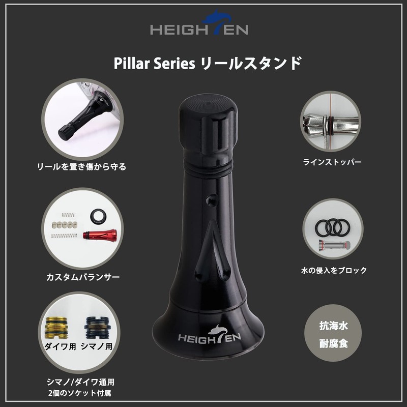 HEIGHTEN Pillar Series (280) 1.8 inches (45 mm) Reel Stand Custom Balancer, Shimano Daiwa Spinning Reel, Universal (Black)