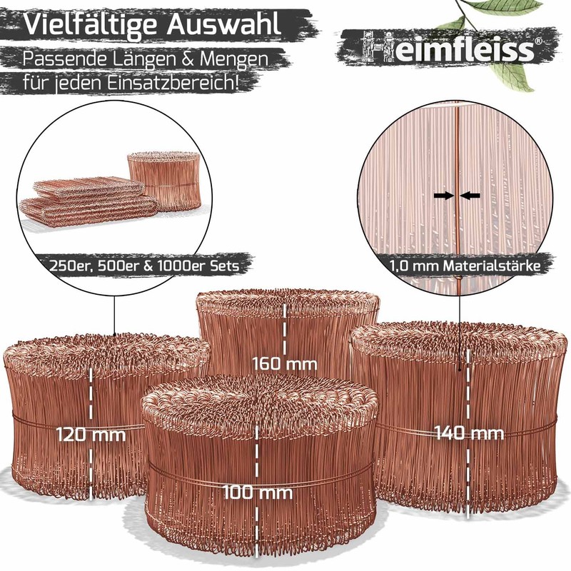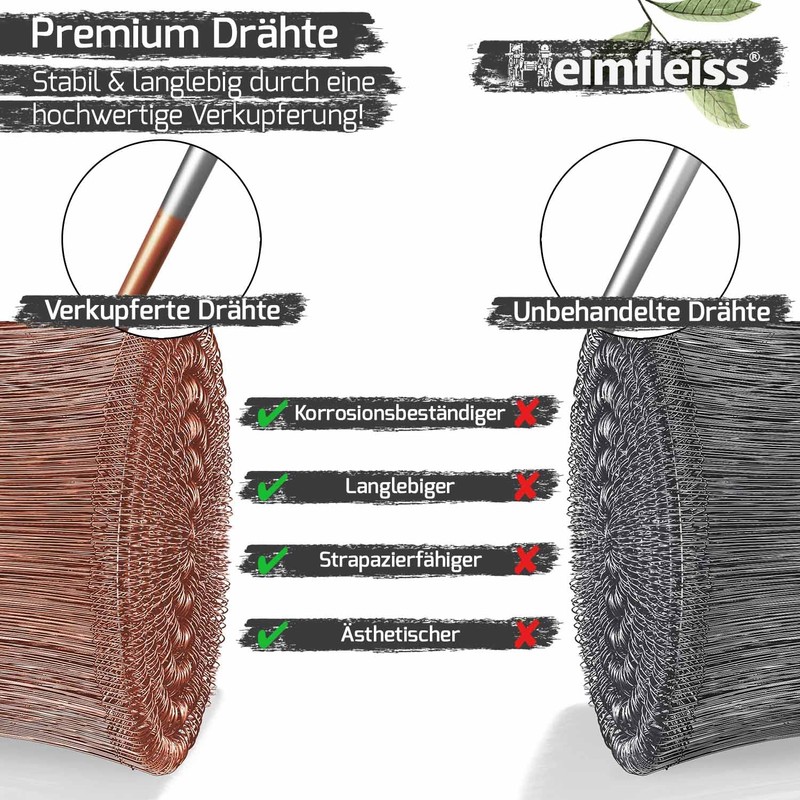 - ✔ Premium material – Heimleiss binding wires are copper-plated and under ordinary circumstances more corrosion resistant than untreated drill wires. Another advantage compared to The conventional unalloyed iron wire bag closure is the increased stability