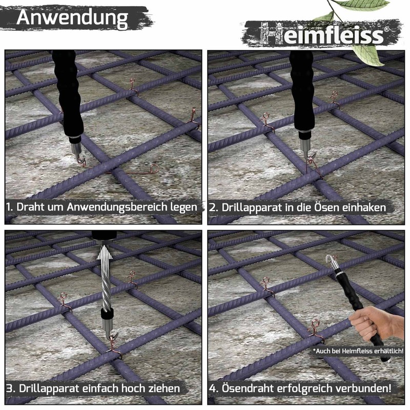 - ✔ Multifunctional – whether as a concrete wire for steel concrete reinforcement, reinforcement of monieres or as a wire bag closure as well as wire ties for flower wire and garden wire - Heimleiss closure wires are versatile in combination with wire driller twister tool