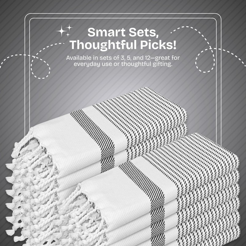 - PREMIUM 100% COTTON MATERIAL: Our Turkish kitchen towels are crafted from high-quality cotton for superior softness, absorbency, and lasting durability.