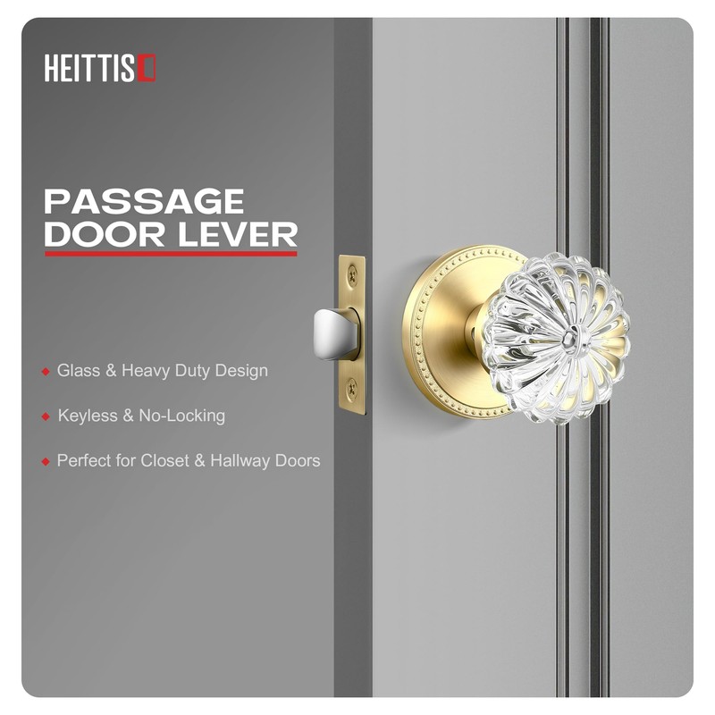 Heittis 4 Pack Passage Glass Door Knobs,Passage Function Interior Door Handle...