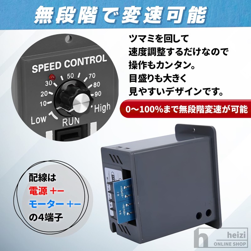 - Speed controller for DC motors. Supports voltage DC12V, 24V, 36V, 48V (9-60V). Stepless output adjustment from 0-100%. Forward and reverse switchable. 40A and 20A for your choice