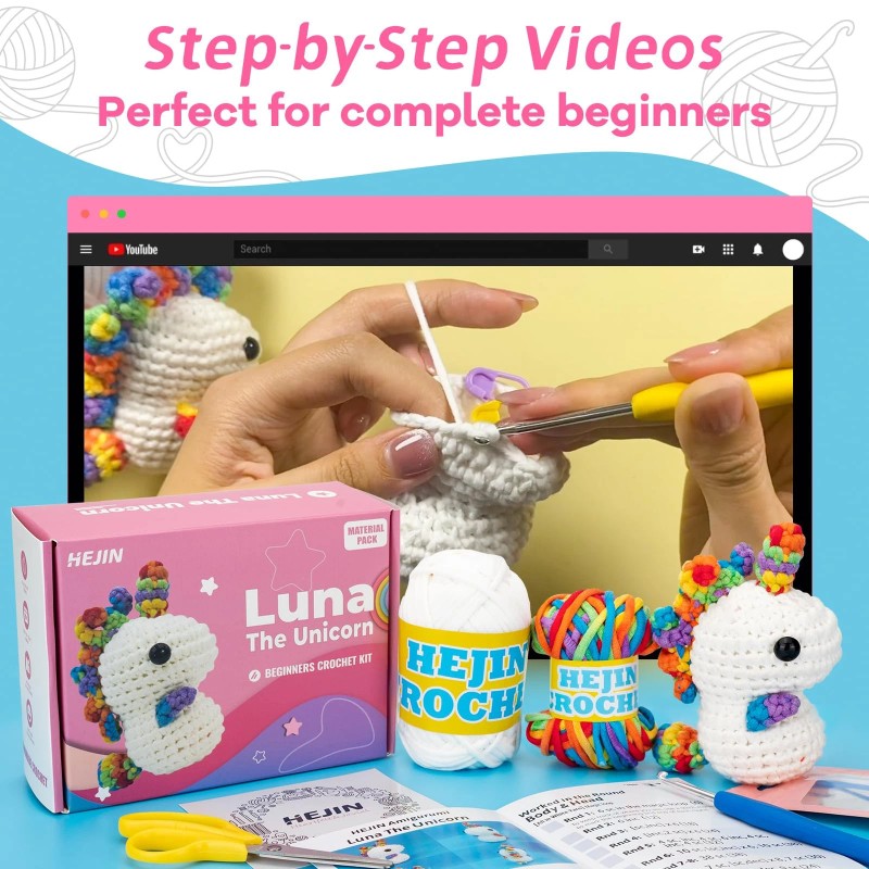 Hejin Crochet Kit for Beginners, Unicorn Crochet Kits for Kids and Adults Include R...