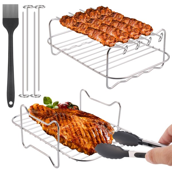 Hejo 2 Stück Heißluftfritteuse Grillrost Kompatibel für Dual Zone Heißluftfritteuse AF300EU/ AF400EU mit 4 Grillstäbchen + 1 Ölbürste und 1 Lebensmittel-Clips