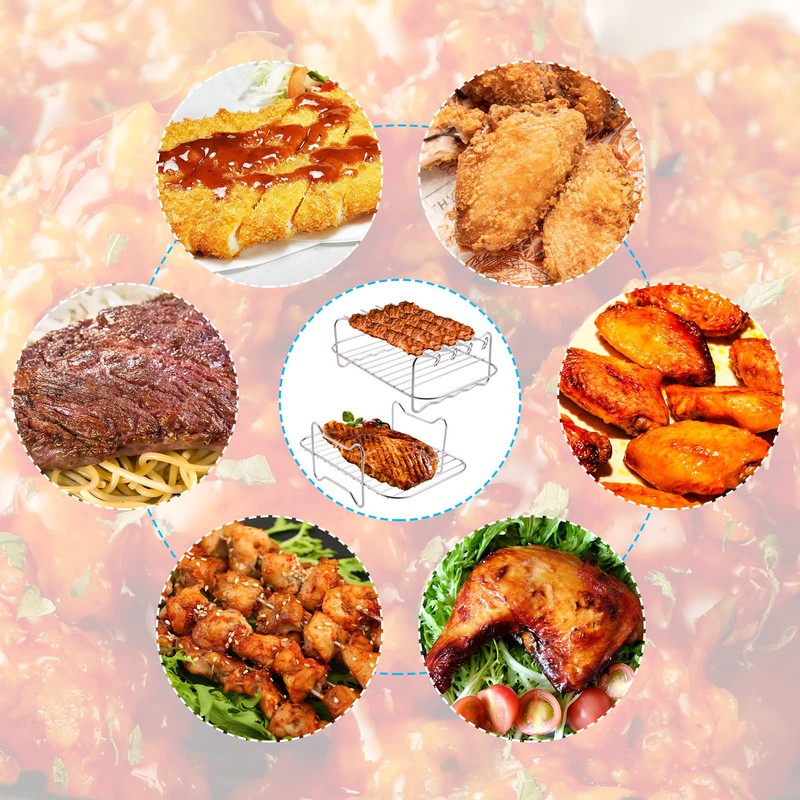 • 【Kompatibel mit Air Fryers】Das Air Fryer Rack passt auf die meisten 3,7 QT-4,2 QT Air Fryers mit zwei Körben, wie Ninja, Instant Vortex, Chefman, Bella, Philips und andere Marken von Air Fryers.