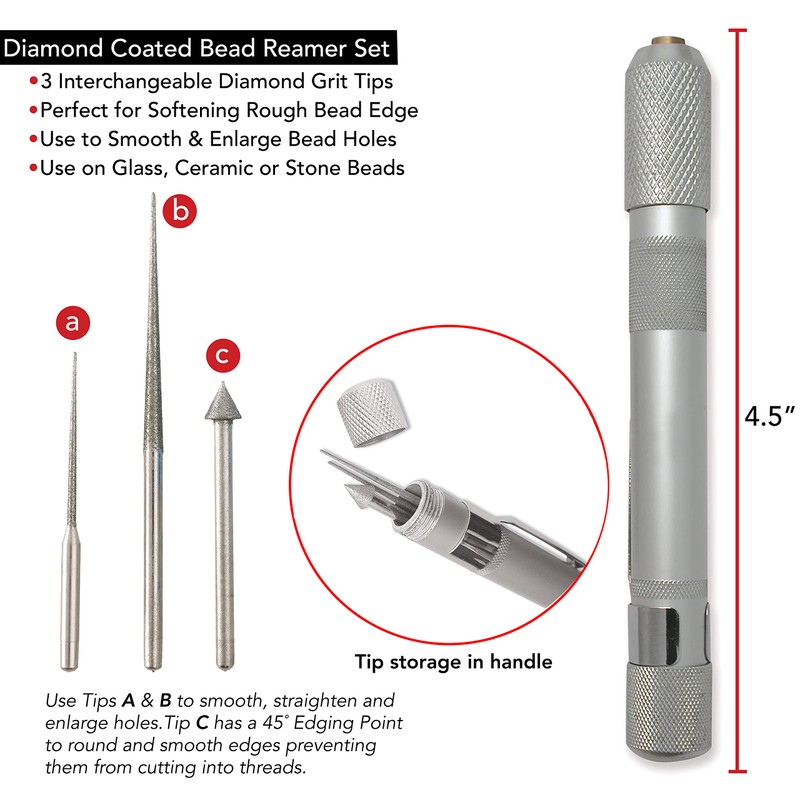 - This professional jeweler's tool enlarges the bead holes and softens the rough edges of ceramic, glass, stone and other types of beads