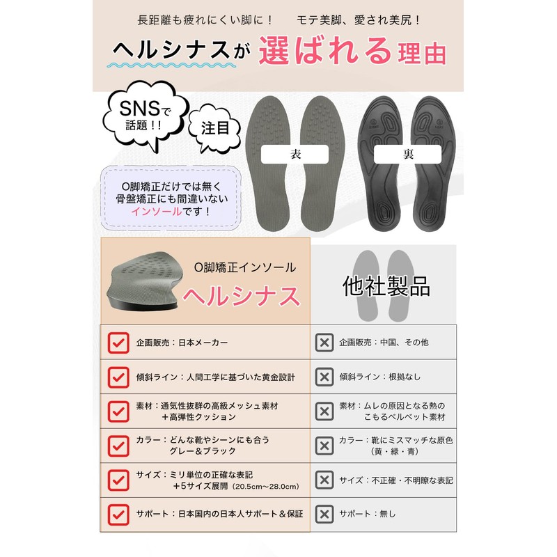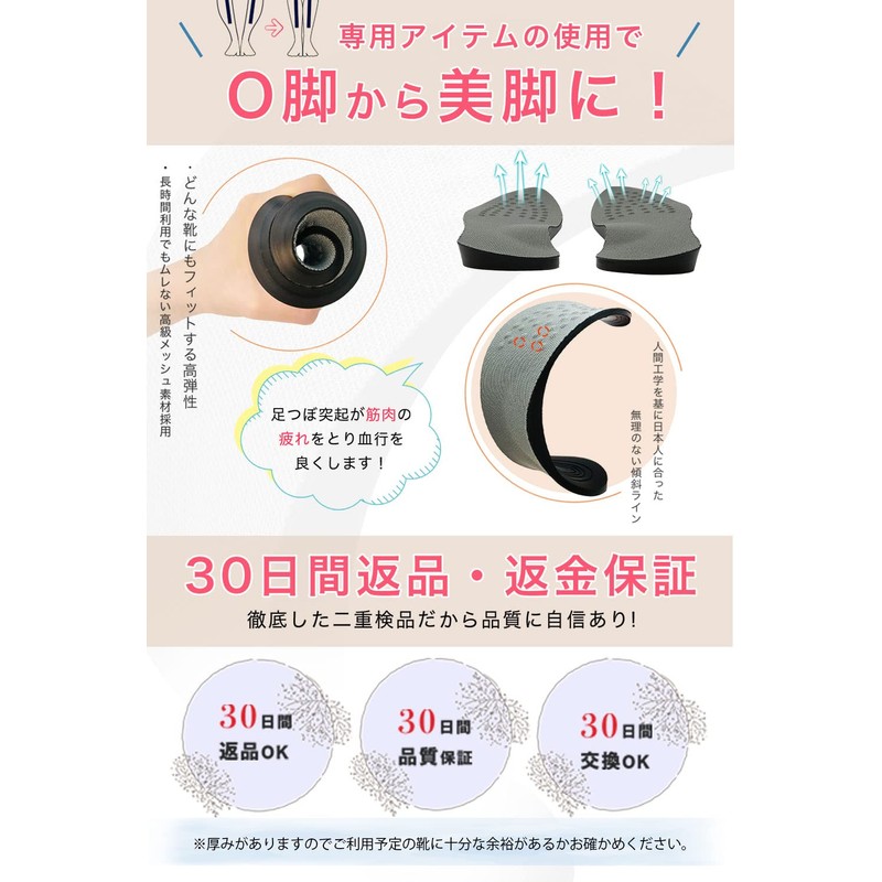 - Specializes in O Leg Correction: This is the only O-leg correction insole designed and developed in Japan as a one-piece of O-leg correction. We have achieved an effortlessly slanted line that fits Japanese people. By walking and the side G during exercise, it leads to beautiful legs and buttocks