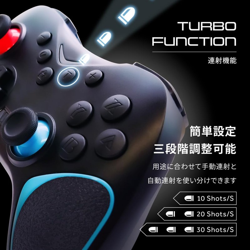 - TURBO Function: The HELEC PAD ALDEBARAN for Switch controller is equipped with a quick fire function that can be easily set up from a Switch controller. 3 levels of speed adjustment between low and ultra-high speeds, 10 and 20 times per second, and 30 times per second. You can also use the long-press and continuous hold mode to support game play with the Switch. TURBO shoots deliver ultra-fast consecutive launch speeds to increase the competitive competition in the msec
