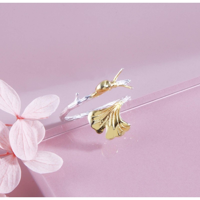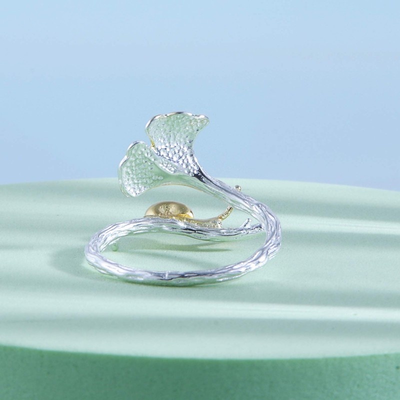 Helen de Lete Snail On Ginkgo Leaf 925 Sterling Silver Open Ring For Women