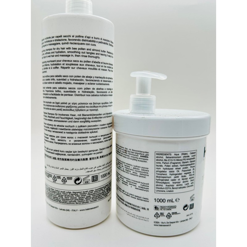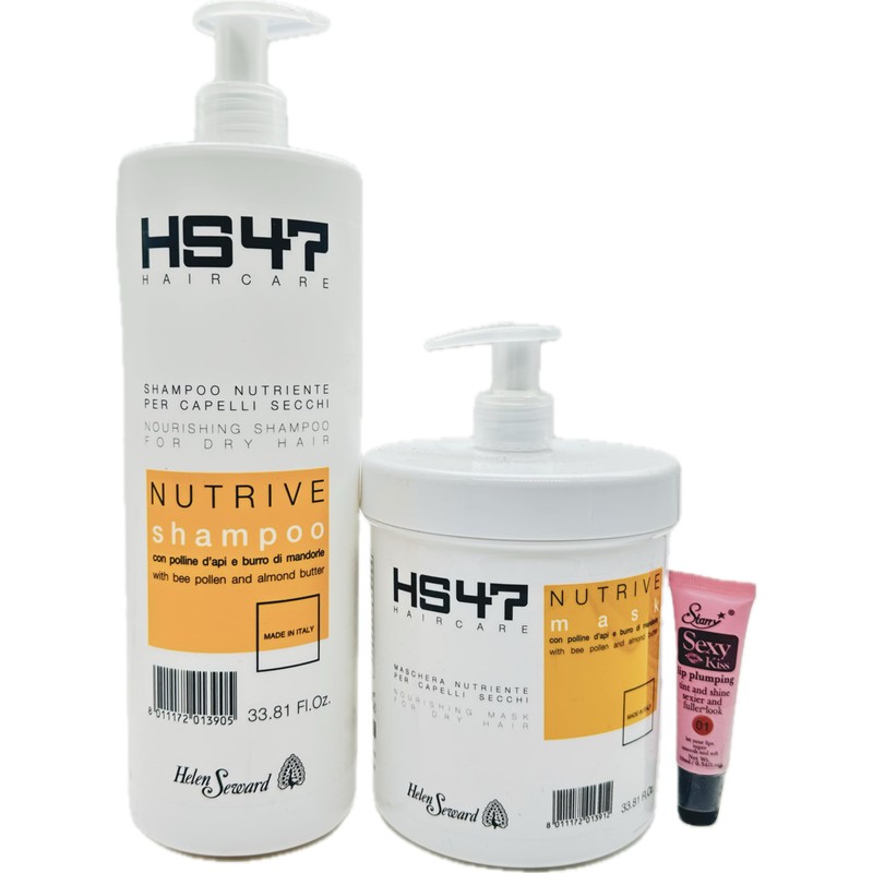 Helen Seward HS47 Nutrive Nourishing Shampoo and Mask for Dry hair 1000ml/33.8oz and Thermo Protective Crystal Serum 100ml/3.38oz - Free Starry Lip Plumping Gloss 10ml