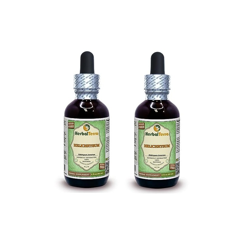 Helichrysum (Helichrysum Arenarium) Glycerite, Organic Dried Flowers Alcohol-FREE Liquid Extract (Brand name: HerbalTerra, Proudly made in USA) 2x2 fl.oz (2x60 ml)