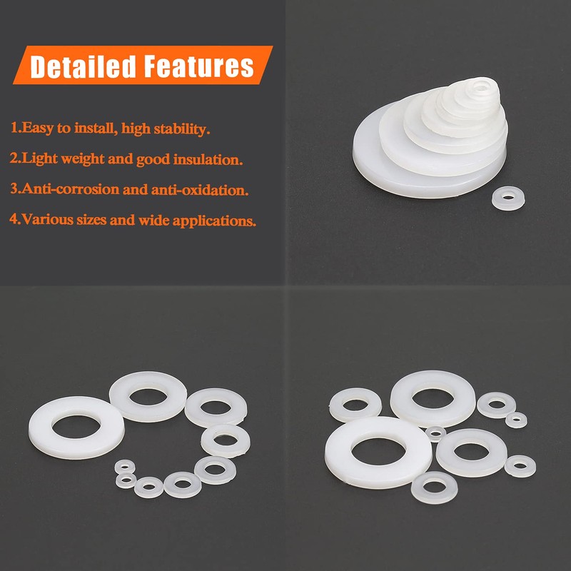 - 【Package Included】800 pieces 9 sizes white nylon flat washers in total, packed in a durable transparent box with label. It is easy to distinguish the size of the product, you can choose the suitable one to meet all your needs.