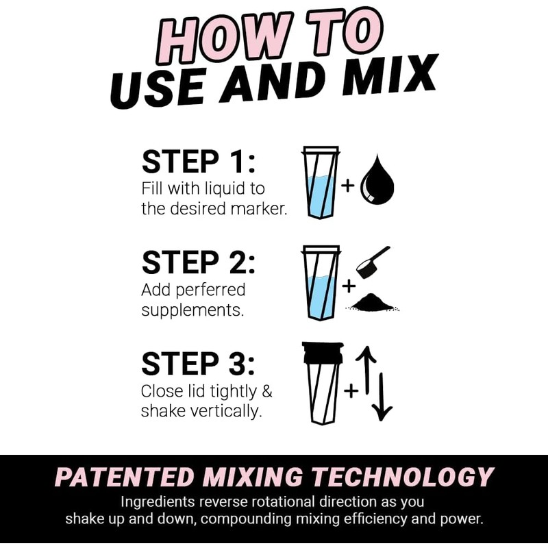 Helimix Shaker Bottle: A gym essential for every workout. No need for a shaker ball or whisk, just shake and blend for a perfect protein shake. Great for pre workout, post workout and intra workout supplements.