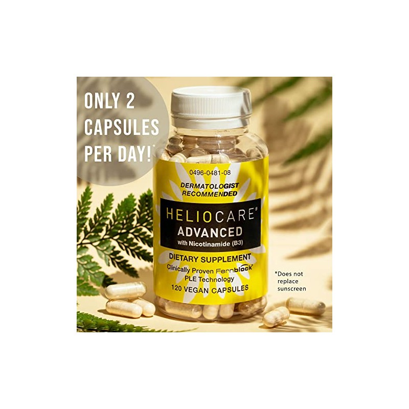 - FOR DAILY USE: Adults may take 2 Heliocare Advanced easy to swallow capsules daily (Niacin 500mg and Fernblock PLE Extract 240mg) or as directed by your physician