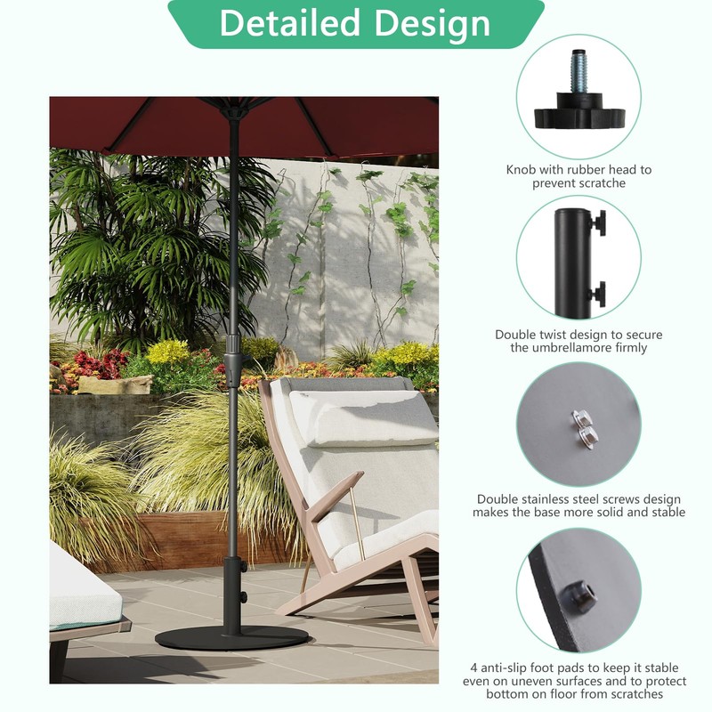 - Dual knobs & anti-slip pads: comes with 2 adjustable knobs that hold the umbrella pole securely. Equipped with 4 non-slip pads to keep it stable even on uneven surfaces and to protect bottom or floor from scratches
