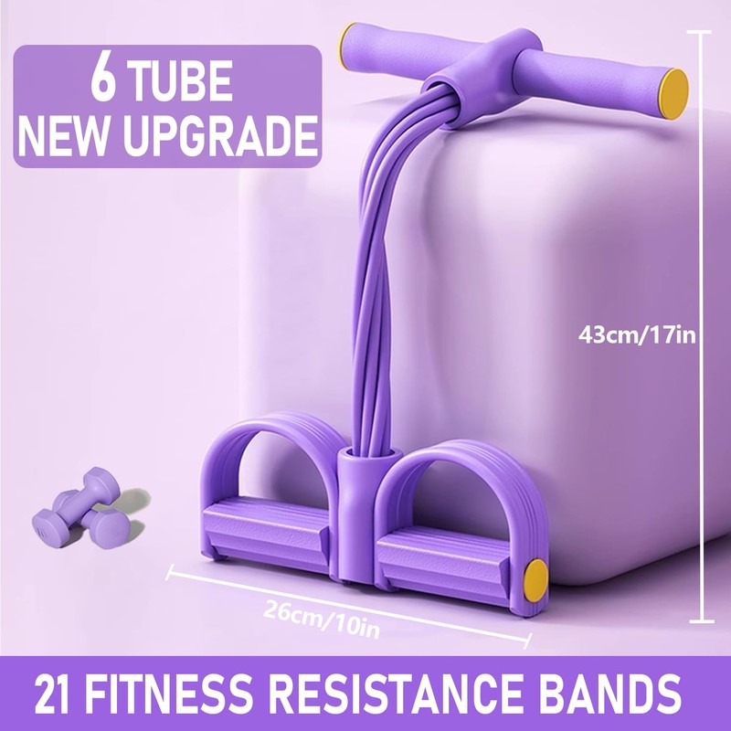 HELISAN 21 Fitness Resistance Bands - 6 Tube Pedal Ankle Puller, 2025 Upgrade Multifunction Exercise Equipment, Foot Pedal Resistance Band with Handle for Women Men, Natural Latex Tension Rope