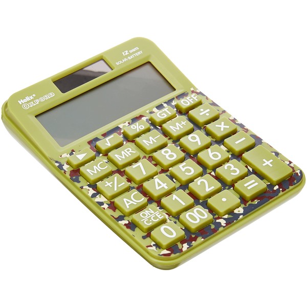The Oxford desk calculator in a limited edition green camo design is ideal for the home, office or school. The Oxford range from Helix has a worldwide reputation for quality and excellence with an enviable brand that is known for using its traditional values of product development and applying them to modern day curriculum requirements. Known across the globe as the world's best maths set and brand leader in the UK, the Helix Oxford Maths Set has sold over 100 million units. Helix was founded 130 years ago in the Midlands, England with a view to offer customers high quality, sturdy and durable stationery to use every day in school, at home or in work. Today Helix's product range may have grown from where it started but Helix still has the love and passion for stationery that it always had, as well as the desire to offer people the best of British design and function in their everyday stationery use.